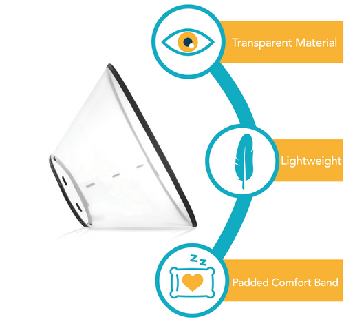 Don't be fooled by this traditional "cone of shame." You can rest assured that we still thought through all the details to ensure a safe and comfortable recovery experience for both you and your pet!