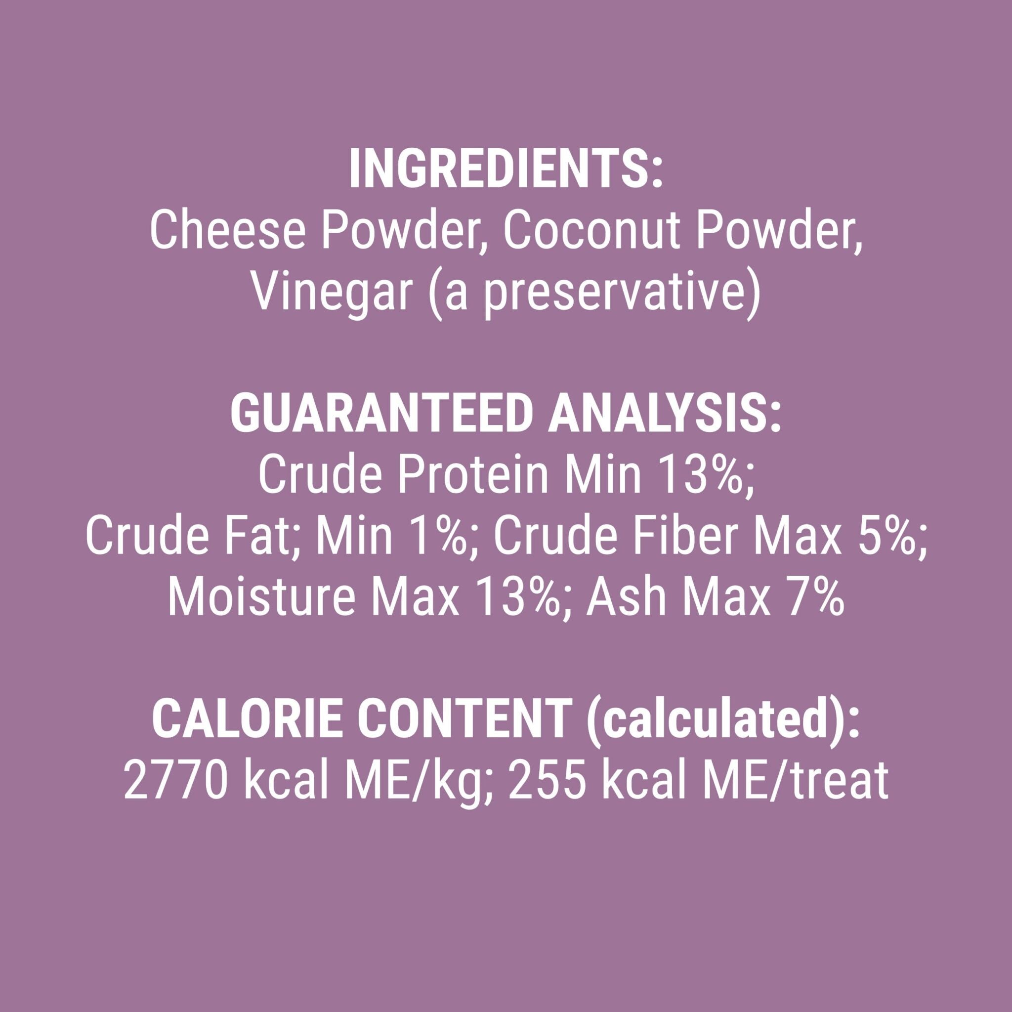 This unique blend of coconut and cheese features essential antioxidants, vitamins, and minerals, with exotic flavors your dog will love. Coconut Bone provides your dog with needed chewing exercise and supports oral health by reducing tartar and plaque buildup during chew sessions. Let your dog enjoy this healthy, lactose-free, guilt-free chew with no binding agents or preservatives.
