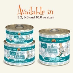 Packed with chicken and yummy pumpkin, Funk in the Trunk is fully loaded with flavors your cat loves. Whole meat chicken breast provides protein and pumpkin delivers a rich consumé that your cat will lick clean.